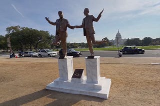 Bronze statues of BFFs Trump and Epstein suddenly appeared overnight in DC. 😂