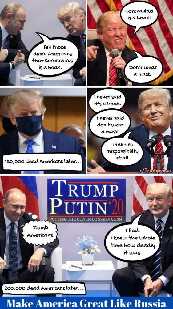 If you don’t vote for Biden, you’re voting for Putin. Putin is America's enemy #1, and Trump is his sock puppet.
