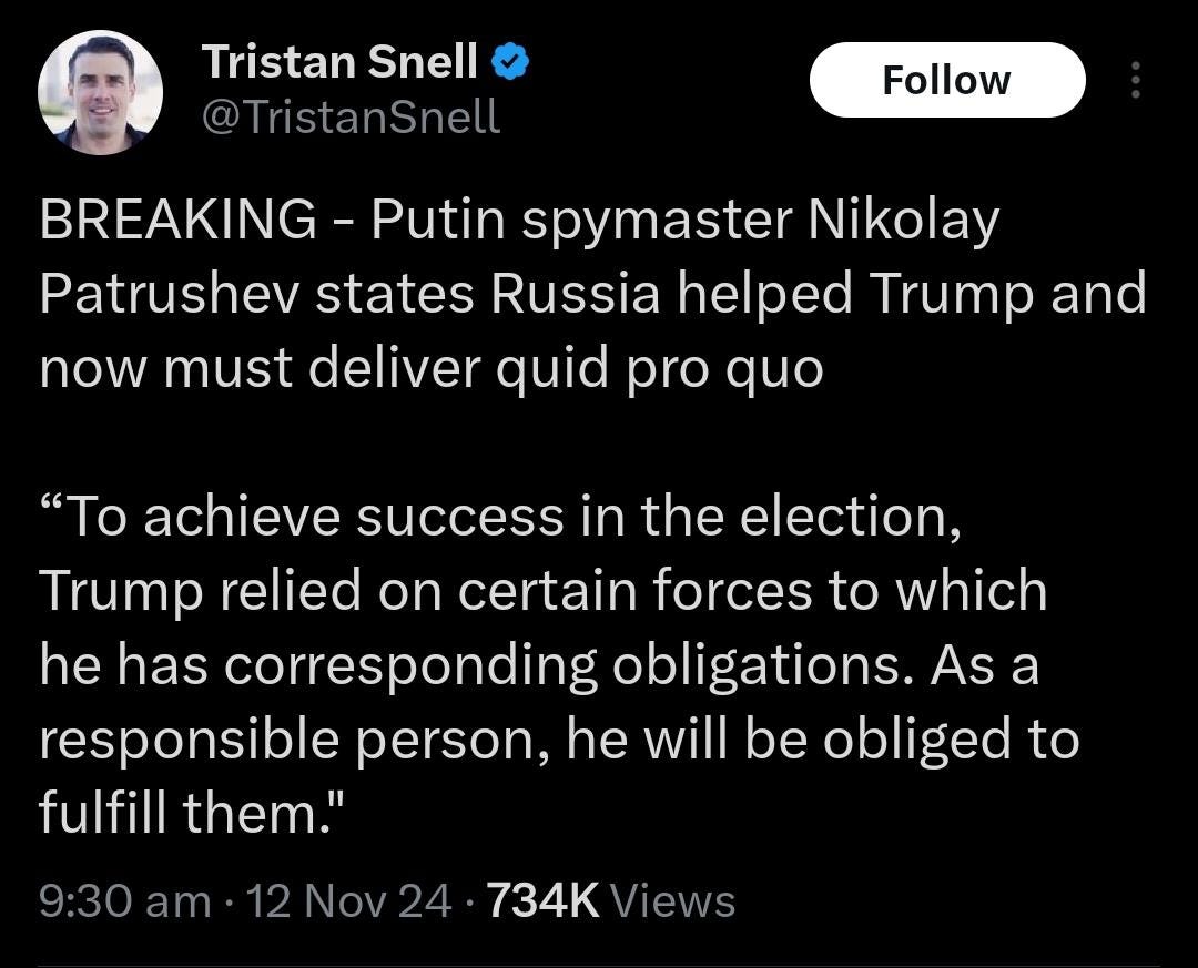 Russian operative says they helped trvmp bamboozle voters, definitely believable. Also says they expect trvmp to pay his debt to them. Donald Trump pay his debts? Did they forget to do a background check?
