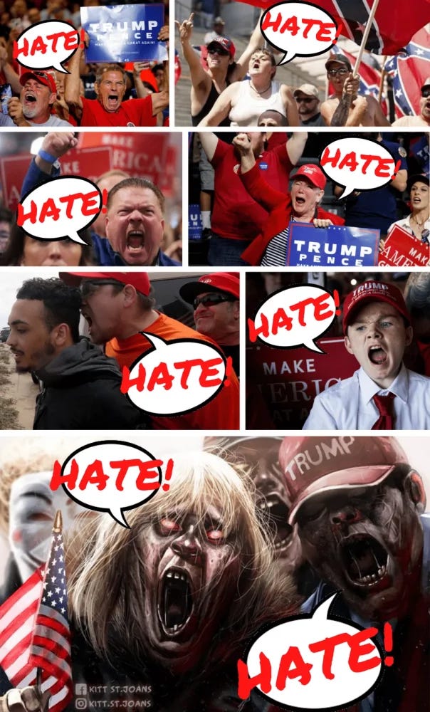 Trump is filling the heads of his MAGA Nazis with hateful lies about Democrats, liberals, Muslims, gay people, and immigrants.
