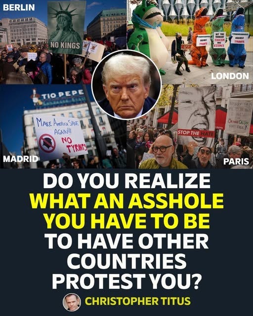 Playback speed×Share postShare post at current timeShare from 0:000:00/0:00Transcript123639Huge anti-Trump protest in South Korea.Orange Hitler managed to turn all of America's allies into our enemies. Bad ChoicesOct 27, 2025123639ShareTranscriptBad Choices Make Good Stories is a reader-supported publication. To receive new posts and support my work, consider becoming a free or paid subscriber.SubscribeDiscussion about this videoCommentsRestacksBad Choices Make Good StoriesSubscribeAuthorsBad ChoicesRecent PostsThe truth about the shutdown: Trump's goal is to destroy the government and rule as dictator.23 hrs ago • Bad ChoicesDementia Donnie posted an AI video of himself shitting on the No Kings protesters.Oct 19 • Bad ChoicesMichael Keaton has a message for MAGA dumbfucksOct 17 • Bad ChoicesMAGA dumbfucks are the dumbest fucking people on the planet.Oct 13 • Bad ChoicesPam Bondi refuses to answer yes or no question: "Does the FBI have incriminating photos of Trump with half-naked young women?"Oct 7 • Bad ChoicesRacist MAGA Karen threatens to report female DoorDash driver to ICE.Sep 25 • Bad ChoicesBronze statues of BFFs Trump and Epstein suddenly appeared overnight in DC. 😂Sep 24 • Bad Choices