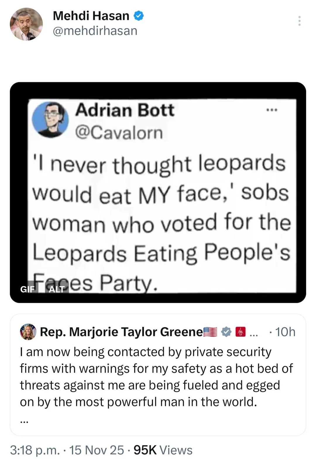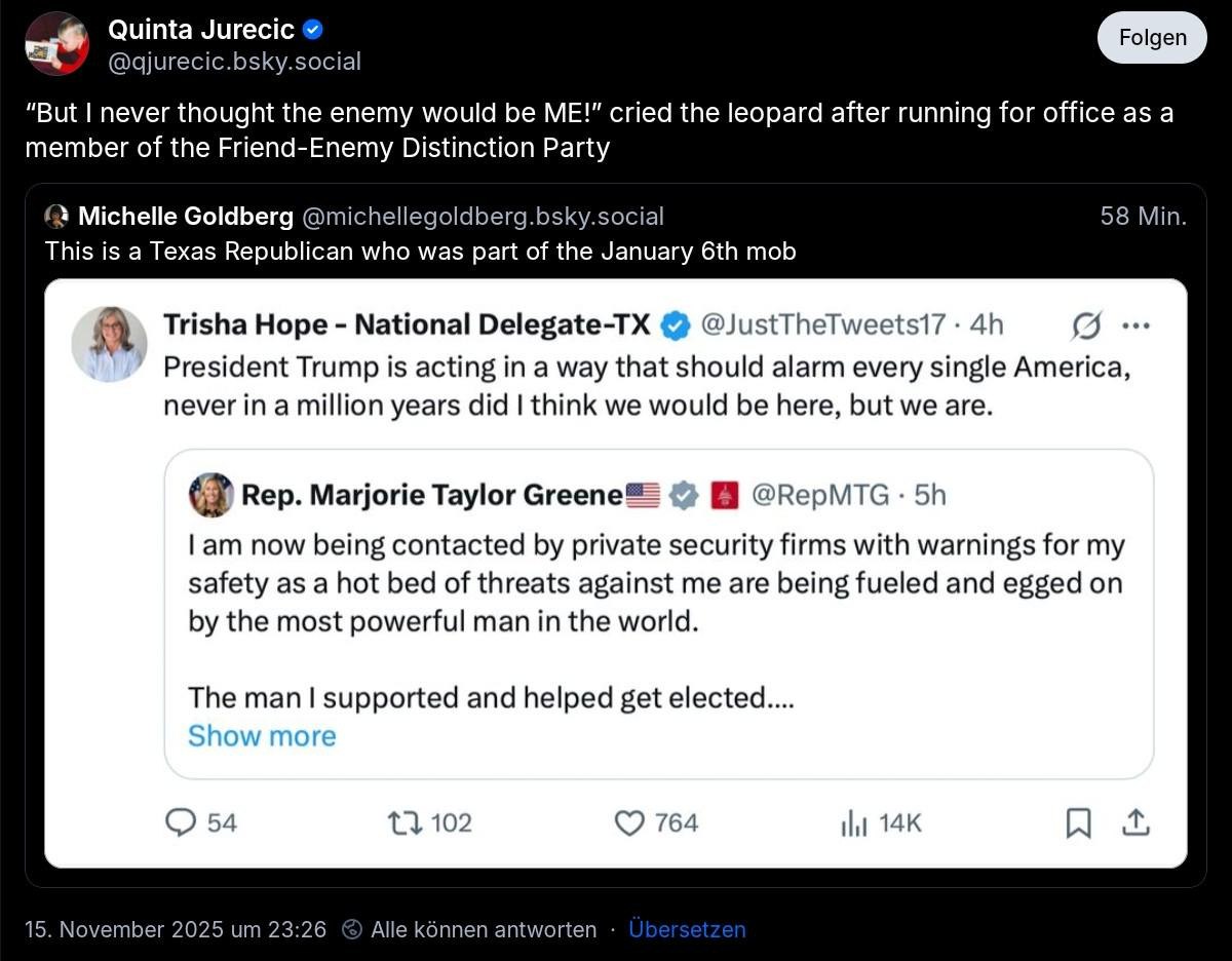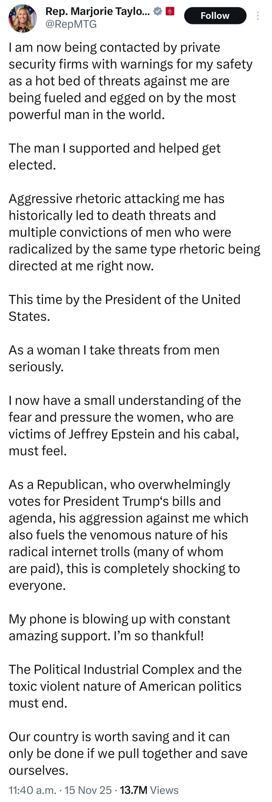 Marjorie Taylor Greene getting death threats from MAGA Nazis after she called for the release of the Epstein files.Liberals and Epstein victims are coming to her defense.Bad ChoicesNov 16, 202522610ShareBad Choices Make Good Stories is a reader-supported publication. To receive new posts and support my work, consider becoming a free or paid subscriber.SubscribePrevious