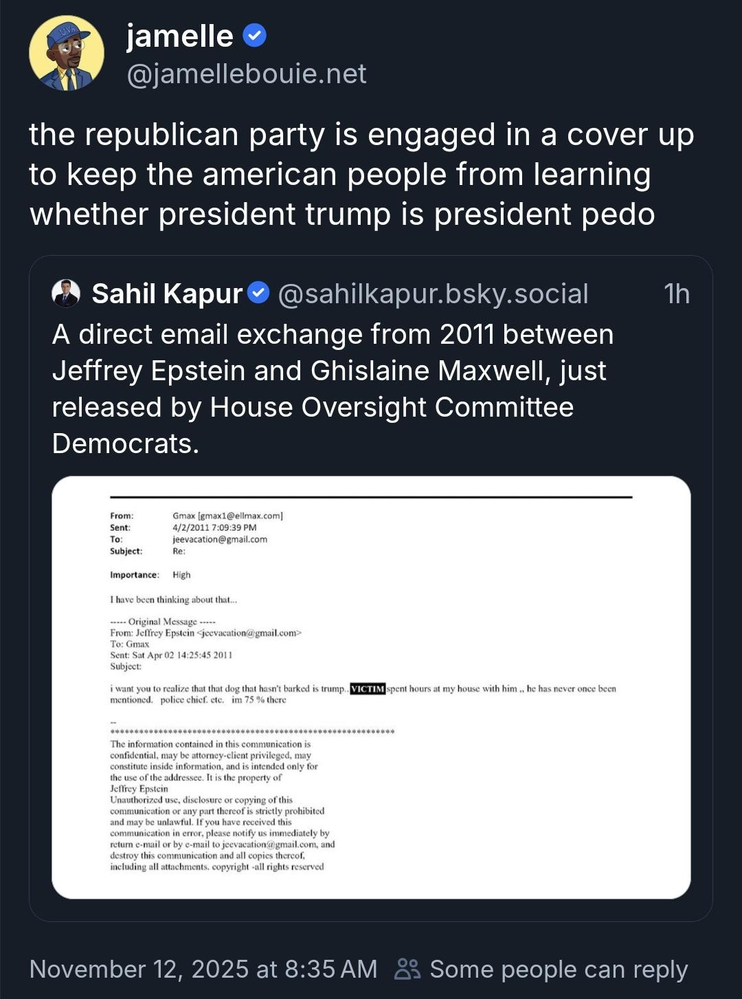 New evidence released by the Epstein estate directly implicates Trump.❤ if you agree the orange child rapist should be in prison, not in the White House.Bad ChoicesNov 12, 202580430ShareBad Choices Make Good Stories is a reader-supported publication. To receive new posts and support my work, consider becoming a free or paid subscriber.SubscribePrevious
