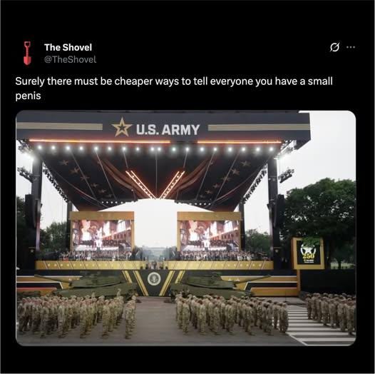 Trump hosts $45 million military parade for himself before underwhelming crowd.
